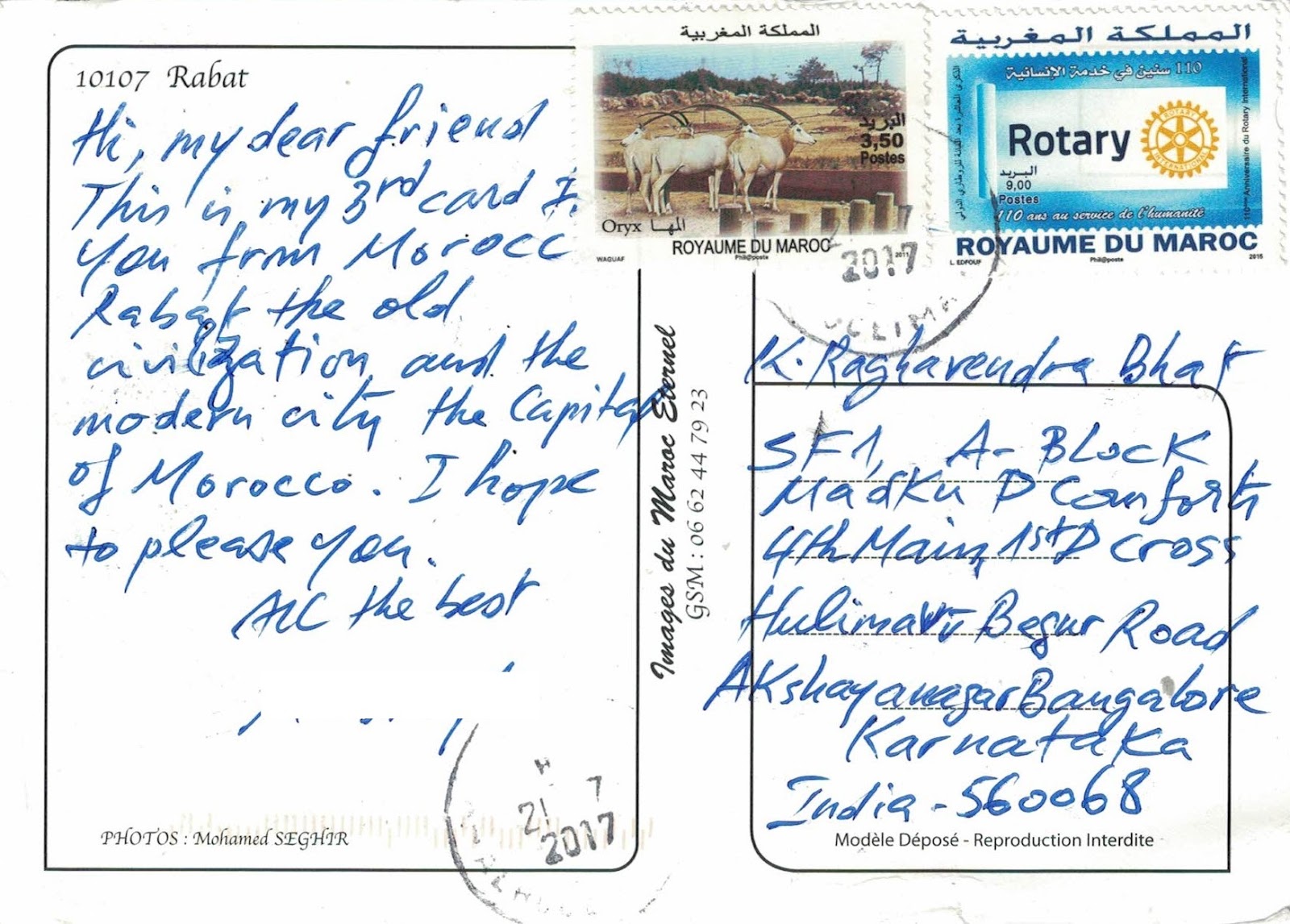Mustapha sent this excellent site card with nice stamps.Thank you Mustapha.